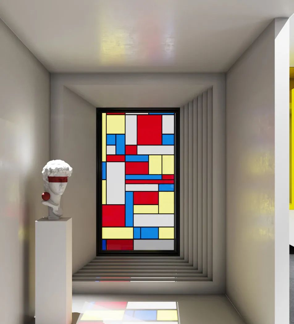透過”紅黃藍(lán)”藝術(shù)玻璃窗