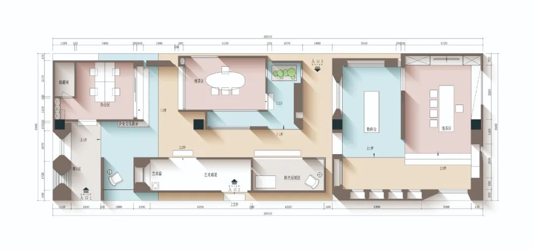 different functional areas are connected with each other by the volume, bringing the spatial visual extension.