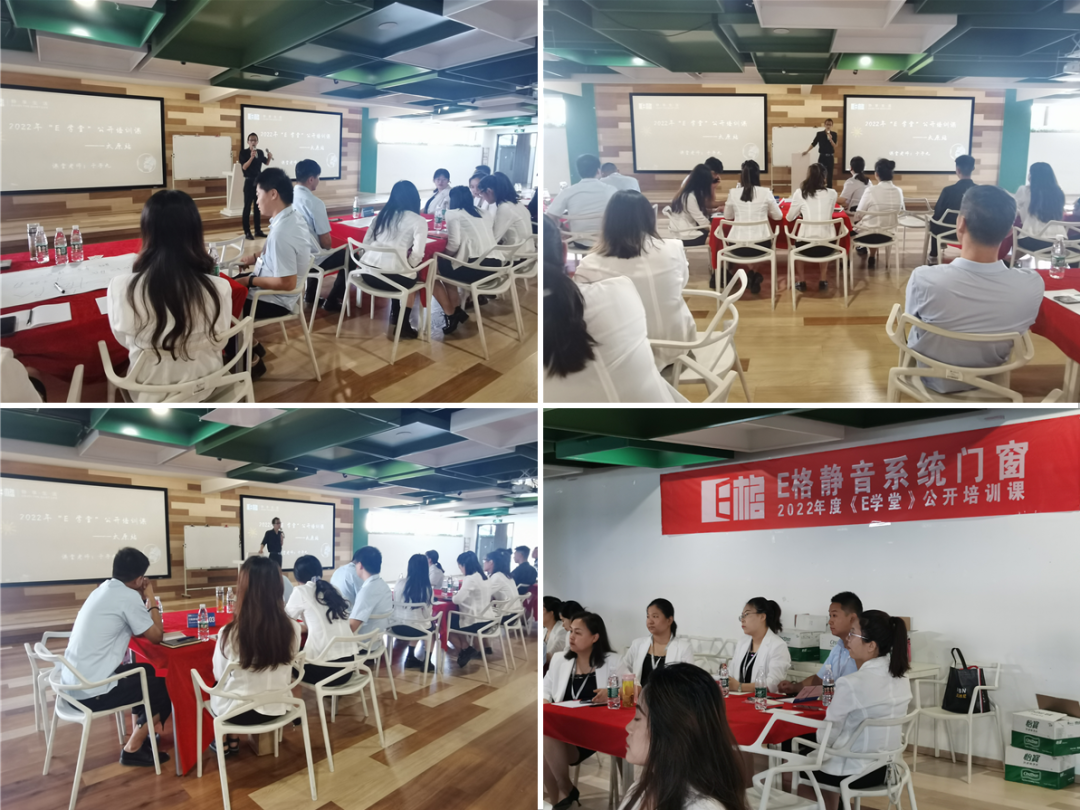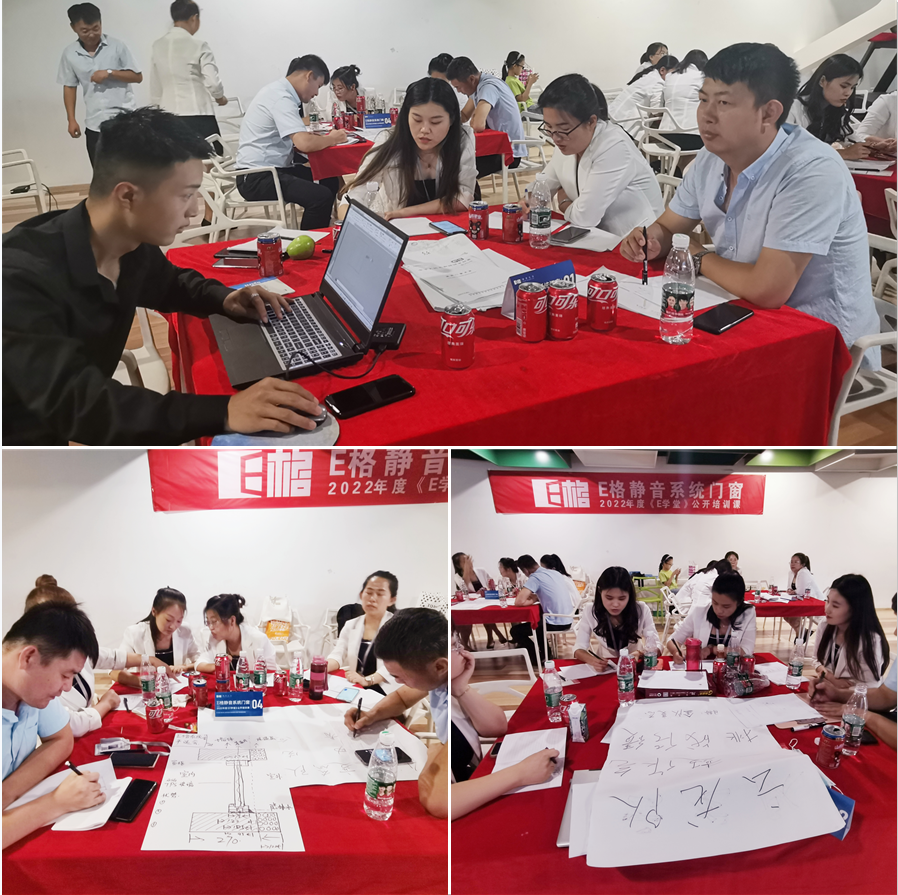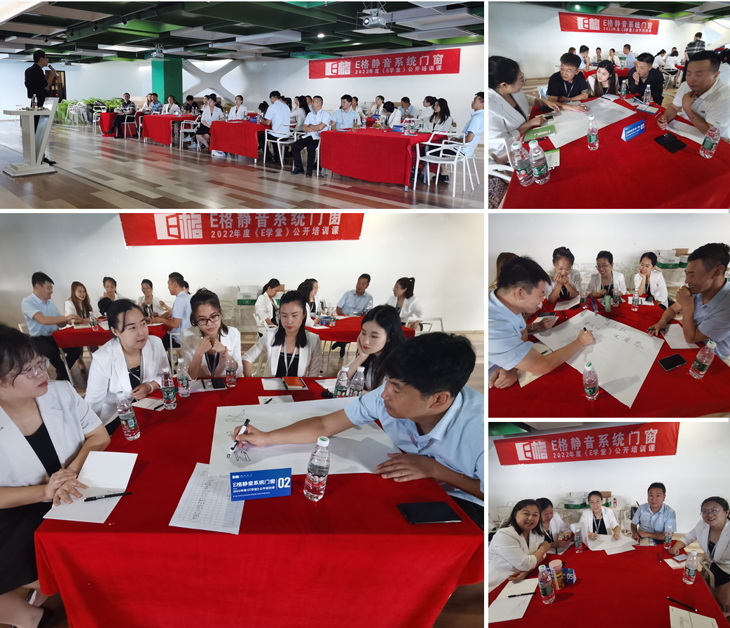 E格靜音系統(tǒng)門窗E學(xué)堂講師——于子九老師,主要從門窗的基礎(chǔ)認(rèn)知、基礎(chǔ)知識(shí)、FABE法則、終端銷售技巧等板塊進(jìn)行深系統(tǒng)培訓(xùn),培訓(xùn)期間,參訓(xùn)精英們認(rèn)真聽課、積極互動(dòng)、踴躍發(fā)言,現(xiàn)場(chǎng)氣氛十分活躍,討論聲更是此起彼伏,將培訓(xùn)會(huì)過(guò)程中的所思、所想、所悟充分交流暢談,并深入貫通。